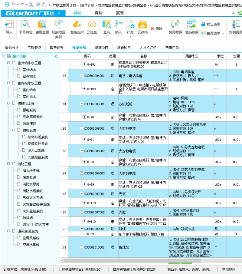 安装计价模板(甘肃省)