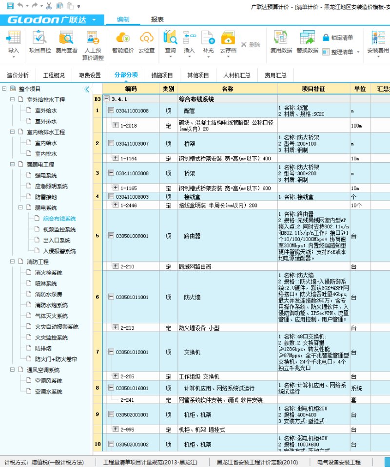 安装计价模板(黑龙江省)