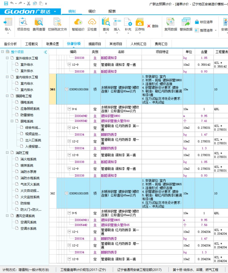 安装计价模板(辽宁省)