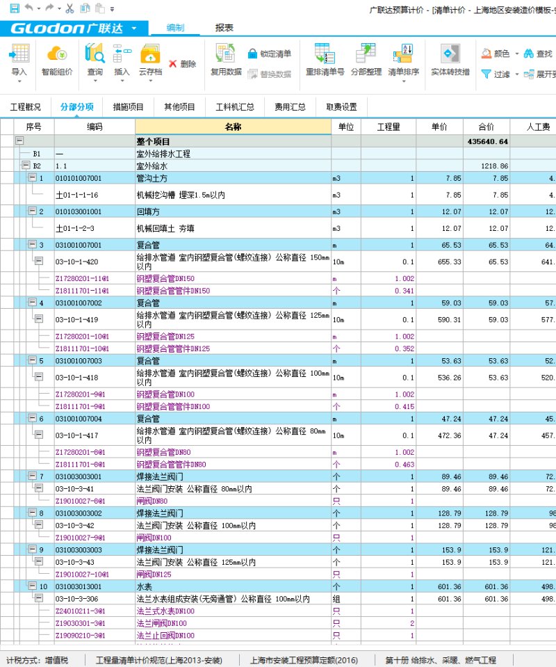 安装计价模板(上海市)